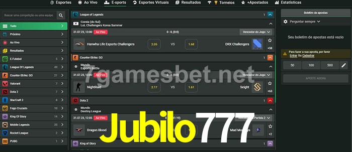 A aposta Jubilo777 oferece aos jogadores a experiência mais conveniente de apostas em eSports!
